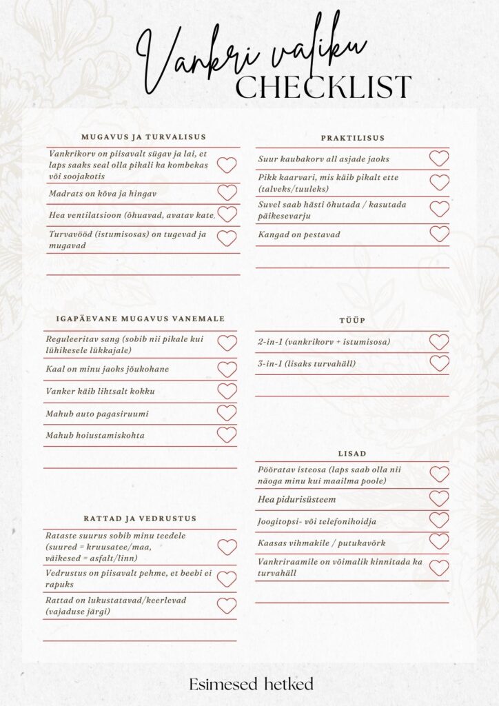 Loodan, et need nipid aitasid sul paremini mõista, milline vanker võiks teie perele kõige paremini sobida! Kui oled parasjagu valimas ja tahaksid kindlust, et midagi olulist ei jääks kahe silma vahele, siis siit leiad ka vankri valimise checklisti, mis aitab kõike olulist samm-sammult läbi mõelda.