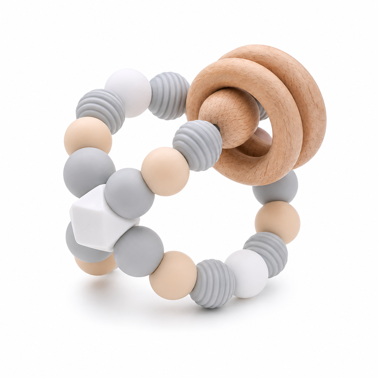 Närimislelu on saadaval kahes variandis – üleni silikoonist ja puidust rõngastega. Pöögipuidust rõngad teevad liigutamisel õrna heli ja äratavad lapse tähelepanu.